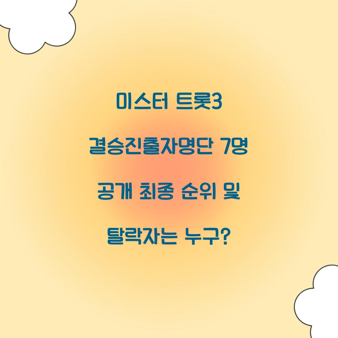 미스터 트롯3 결승진출자명단 7명 공개 최종 순위 및 탈락자는 누구?