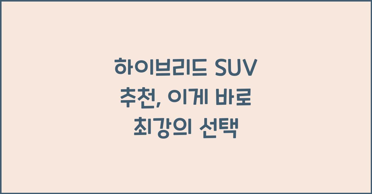 하이브리드 SUV 추천, 이게 바로 최강의 선택