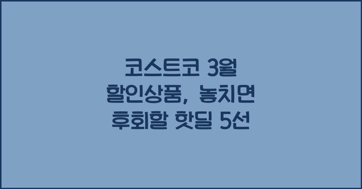 매일매일 새로운 물건이 쏟아지는 코스트코. 하지만 3월 할인상품 중에서 특별히 눈여겨볼 만한 아이템들이 있습니다. 이러한 할인상품들은 품질도 뛰어나면서 가격이 저렴해 많은 소비자에게 사랑받고 있습니다.이번 글에서는 코스트코 3월 할인상품 중 놓치지 말아야 할 핫딜 5선을 소개해 드릴게요.코스트코 3월 할인상품 더 알아보기📌 코스트코 3월 첫째주 할인 상품코스트코의 3월 첫째주는 시작과 함께 많은 소비자에게 부담 없는 가격의 제품들이 할인되고 있습니다. 이때를 놓치지 말아야 하죠!첫째주에는 신선한 과일이나 야채, 이른 봄을 맞아 필요한 제품들이 대폭 할인되곤 합니다. 장바구니에 담아 가는 즐거움은 물론, 건강까지 챙길 수 있는 기회입니다.예를 들어, 사과와 같은 과일이 신선하게 입고되면, 코스트코 3월 ..