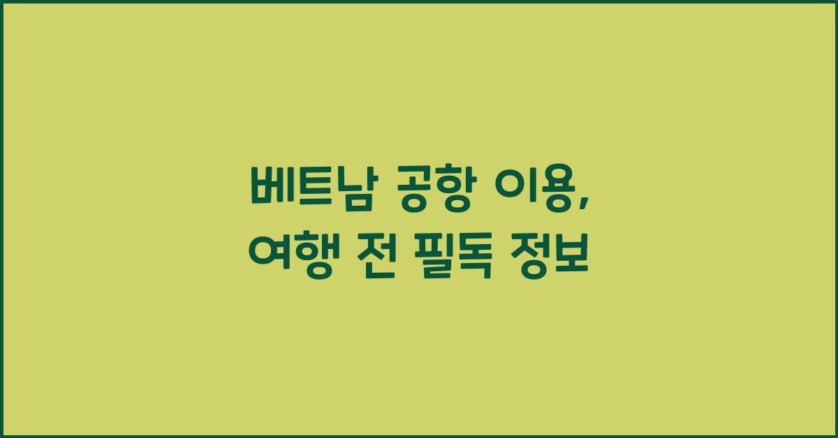 베트남 공항 이용의 기본 지식여행을 준비하면서 가장 먼저 고려해야 할 사항 중 하나가 바로 공항 이용 관련 정보입니다. 특히 베트남 공항 이용을 계획하고 있다면, 이 나라의 독특한 교통체계와 문화에 대한 이해가 필요합니다. 베트남의 주요 공항으로는 하노이의 노이바이 국제공항과 호치민의탄손녓 공항이 있습니다. 이 두 곳은 베트남을 방문하는 지구촌 관광객들에게 가장 큰 관문 역할을 하고 있습니다. 하지만 공항을 처음 이용해본다면 혼란스러운 상황이 많이 발생할 수 있습니다.베트남 공항 이용 더 알아보기우선, 베트남 공항 이용 시 비행기 탑승 전 필요한 서류와 절차를 미리 숙지하는 것이 중요합니다. 여권, 비자, 그리고 항공권은 필수로 준비해야 할 항목인데요. 특히 비자는 사전에 꼭 확인해 보세요. 한국과 베트..