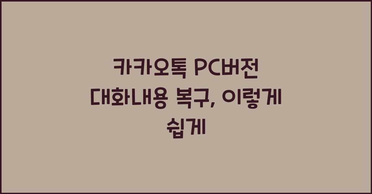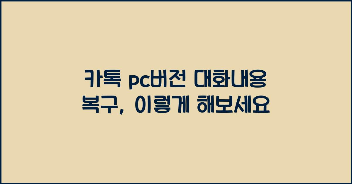 PC 버전의 카톡에서 대화내용 복구하기카카오톡은 우리 일상에서 중요한 소통 도구 중 하나입니다. 특히, PC버전의 카카오톡은 편리하게 대화할 수 있는 장점이 있어 많은 사람들이 사용하고 있습니다. 하지만 때때로 소중한 대화내용이 지워지거나 사라지는 불상사가 발생할 수 있습니다. 이런 상황에서 당황하지 않고, 카톡 pc버전 대화내용 복구를 위한 방법을 알아보는 것이 중요합니다. 아무리 기술이 발전해도, 가끔은 데이터 손실이 일어날 수 있는 법이니까요!카톡 pc버전 대화내용 복구 더 알아보기대화내용을 복구하는 방법은 여러 가지가 있지만, 우선적으로 카카오톡의 백업 기능을 활용하는 것이 좋습니다. 카카오톡은 주기적으로 대화 내용을 클라우드에 백업할 수 있는 기능을 제공하고 있습니다. 이를 통해 간편하게 대화내..