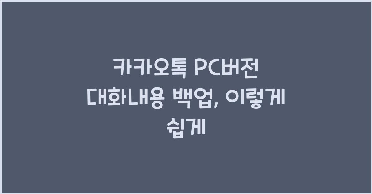 카카오톡 PC버전 대화내용 백업 방법카카오톡 PC버전 대화내용 백업은 간편하게 할 수 있는 과정입니다. 많은 사용자들이 물리적인 저장공간에 이 데이터를 보관하기 원하지만, 어떻게 해야 할지 몰라서 고민하는 경우가 많아요. 하지만 걱정 마세요! 이 글을 통해 단계별로 쉽게 따라 할 수 있는 방법을 소개할게요.카카오톡 pc버전 대화내용 백업 더 알아보기먼저, 카카오톡 PC버전을 사용하고 있는지 확인하세요. PC버전에서는 사용자에게 채팅기록을 쉽게 백업할 수 있는 기능이 제공됩니다. 이 기능을 활용하면 대화 내용뿐만 아니라 사진과 파일도 쉽게 저장할 수 있으니, 필요한 자료를 잃어버릴 걱정은 없답니다. 신속하게 백업할 수 있는 환경이 조성되어 있으니 한번 시도해보세요!첫 번째 단계로, 카카오톡 PC버전을 실행..