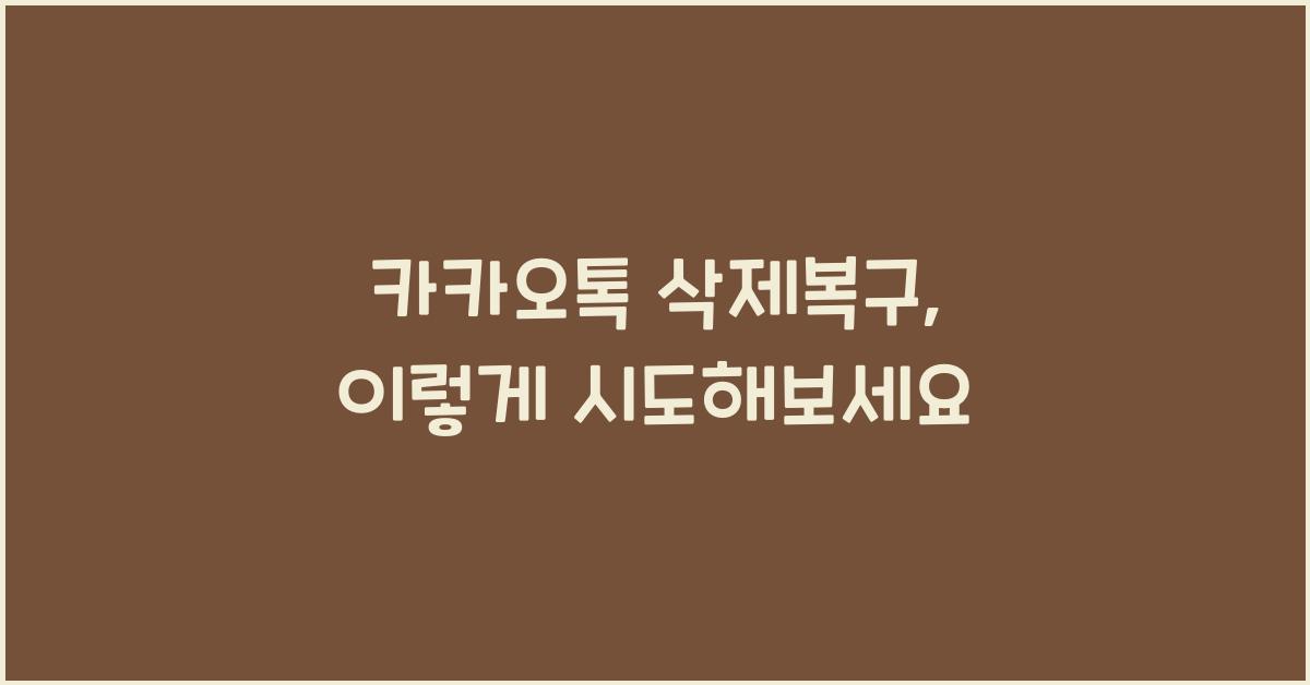 카카오톡 삭제복구: 데이터 복원의 첫걸음카카오톡을 사용하면서 가장 당황스러운 순간은 데이터를 실수로 삭제했을 때일 것입니다. 특히 카카오톡 삭제복구는 반복적인 문제이기도 합니다. 이 글에서는 카카오톡에서 삭제된 메시지나 친구, 사진 등을 복구하는 방법에 대해 깊이 알아보겠습니다. 일상 속 소중한 대화를 복원하는 과정을 통해 마음의 평화를 찾아보세요.카카오톡 삭제복구 더 알아보기삭제된 카카오톡 메시지를 복구하는 과정은 생각보다 쉽지 않을 수 있습니다. 특히 카카오톡 삭제 메시지 복구가 필요한 상황이라면 더욱 이럴 것입니다. 하지만 포기하지 마세요! 다양한 방법으로 삭제된 데이터를 되살릴 수 있습니다. 이 글에서는 특정 방법을 단계적으로 설명하여, 여러분이 직접 복구할 수 있도록 안내할 것입니다.카카오톡 삭..