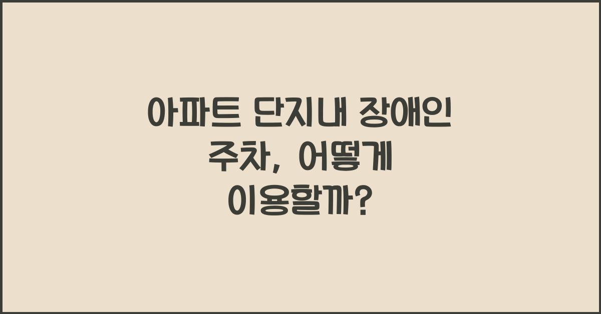 장애인 주차장 이용의 중요성장애인 주차장은 단순한 주차 공간이 아닙니다. 이것은 장애인들이 일상생활을 영위하는 데 도움을 주는 필수적인 시설입니다. 장애인 주차장 이용이 편리하게 이루어질 수 있다면, 그만큼 많은 이들이 보다 자유롭고 편안한 생활을 누릴 수 있을 것입니다. 그렇기 때문에 장애인 주차장 이용 시 정확한 정보 습득은 매우 중요하죠!장애인 주차장 이용 더 알아보기요즘 장애인 주차장 이용에 대한 법적 제도가 많이 발전하고 있지만, 여전히 현장에서의 어지러운 상황 때문에 어려움을 겪는 분들이 많습니다. 많은 사람들이 이 점에 대해 모르고 지나치기 쉬운데, 가령 주차 요금이나 장애인 등록증에 대한 정보 등 작은 부분들조차 간과할 수 있습니다. 따라서 지속적으로 최신 정보를 업데이트하고, 필요시 관련..