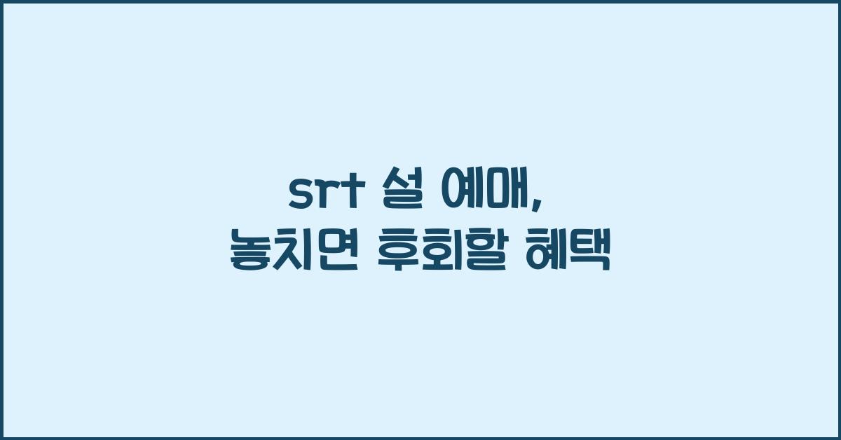 SRT 설 예매의 중요성설날이 다가오면, 가족들과의 소중한 만남을 위해 많은 사람들이 고향으로 향합니다. 이런 시기에 SRT(고속철도)를 이용한 여행은 시간도 절약하고 편리함까지 더해줍니다. 하지만 이러한 여행을 계획하면서 가장 먼저 신경 써야 할 것은 바로 'SRT 설 예매'입니다. 이 특별한 시기는 대중교통 수요가 급증하기 때문에 미리 예약하지 않으면 원치 않는 차질이 발생할 수 있죠.srt 설 예매 더 알아보기온라인에서 SRT 설 예매를 진행하면, 막상 편하게 예약하는 그 자체에서 오는 기쁨을 느낄 수 있습니다. 좌석을 고르는 재미 또한 간과할 수 없죠. 고향의 향수를 느끼고 싶은 자리에 앉을 수 있도록 선택할 수 있는 특권이 주어집니다. 이는 단순한 좌석 확보 이상의 의미를 가집니다; 고향으로의 ..