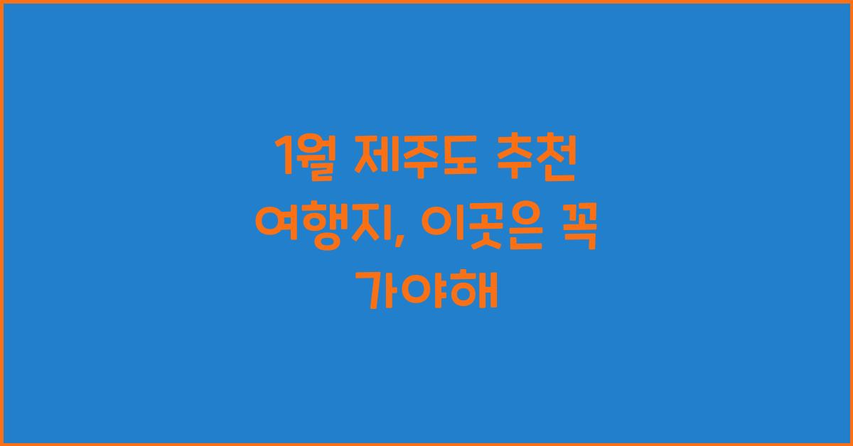 1월 제주도 추천 여행지: 제주도의 매력1월 제주도 추천 여행지로 가장 먼저 떠오르는 곳은 제주 해변입니다. 이곳의 겨울 바다는 맑고 차가운 날씨 속에서 많은 이들에게 맑은 기분을 선사합니다. 바닷가의 풍경은 절경으로, 차가운 바람과 함께 파도의 소리를 느끼며 원하는 모든 근심에서 벗어날 수 있는 특별한 경험을 제공합니다. 제주 해변에서의 겨울 산책은 그 자체로 편안한 치유가 됩니다.1월 제주도 추천 여행지 더 알아보기한라산의 겨울 매력또 다른 1월 제주도 추천 여행지로는 한라산을 빼놓을 수 없습니다. 특히 겨울철 한라산은 눈으로 덮인 장관을 이루며 겨울 하이킹의 매력을 더해줍니다. 각기 다른 난이도의 트레킹 코스가 마련되어 있어 처음 방문하는 사람들도 쉽게 도전할 수 있으며, 정상이 주는 환상적인 경치..