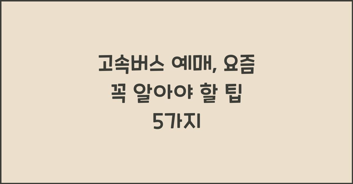고속버스 예매, 요즘 꼭 알아야 할 팁 5가지