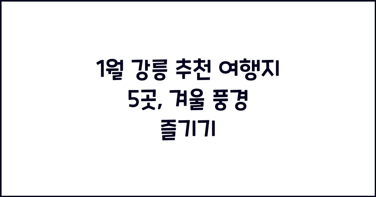 1월 강릉 추천 여행지: 소개겨울의 매력을 느끼고 싶은 여행자들이라면 강릉을 체크 리스트에 올리는 것이 좋습니다. 1월 강릉 추천 여행지 중 하나는 바로 바다와 산이 어우러진 이 아름다운 도시입니다. 강릉의 겨울 풍경은 마치 한 편의 동화 속에서 튀어나온 듯한 모습입니다. 뜨거운 차 한잔을 들고 바닷가를 걷거나, 눈 쌓인 산을 바라보며 정취를 즐길 수 있습니다. 이번에는 강릉에서 반드시 방문해야 할 대표적인 여행지를 소개하겠습니다.1월 강릉 추천 여행지 더 알아보기1. 경포대: 겨울의 풍경을 한눈에경포대는 강릉에서 가장 유명한 관광지 중 하나로, 겨울철에는 특히 그 매력이 빛을 발합니다. 경포대의 해변은 차갑게 얼어붙은 바다와 하얀 눈으로 덮인 모래사장이 어우러져 breathtaking한 경치를 만들어냅..